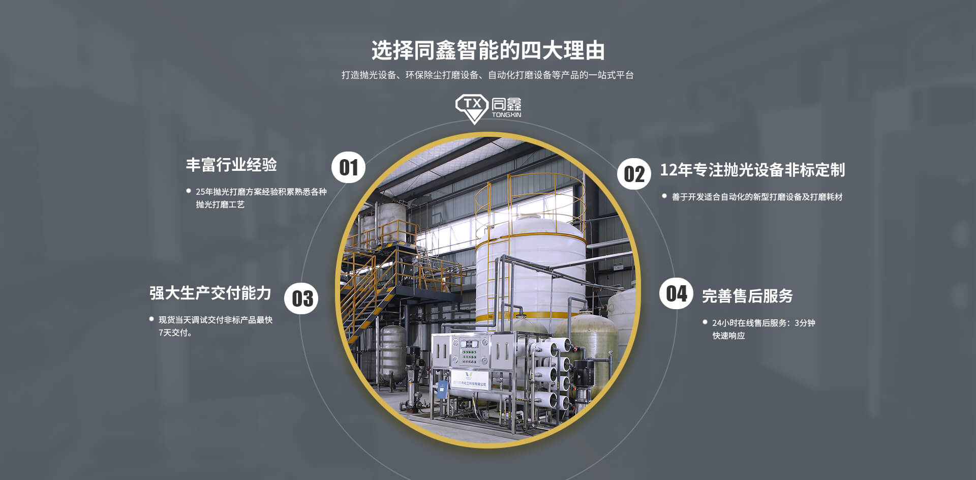 佛山市同鑫智能裝備科技有限公司位于廣東省大灣區(qū)腹地——佛山,成立于2009年4月,多年來一直致力于主要拋光打磨設(shè)備的研發(fā)生產(chǎn)和銷售。集焊接、打磨、噴涂、粉塵空氣凈化、智能廢水回收的技術(shù)研發(fā)、制造、銷售于一體的專業(yè)非標(biāo)自動(dòng)化設(shè)備的企業(yè),公司擁有一大批應(yīng)用高級工程師及技工人才,公司在技術(shù)上不斷創(chuàng)新、研討、不斷引進(jìn)先進(jìn)設(shè)備,技術(shù)日新月異,受到客戶一致好評。